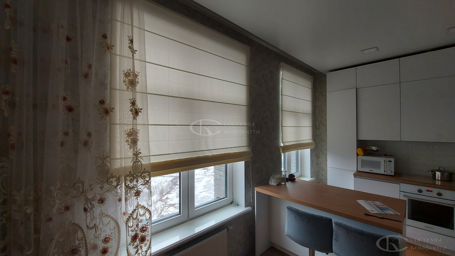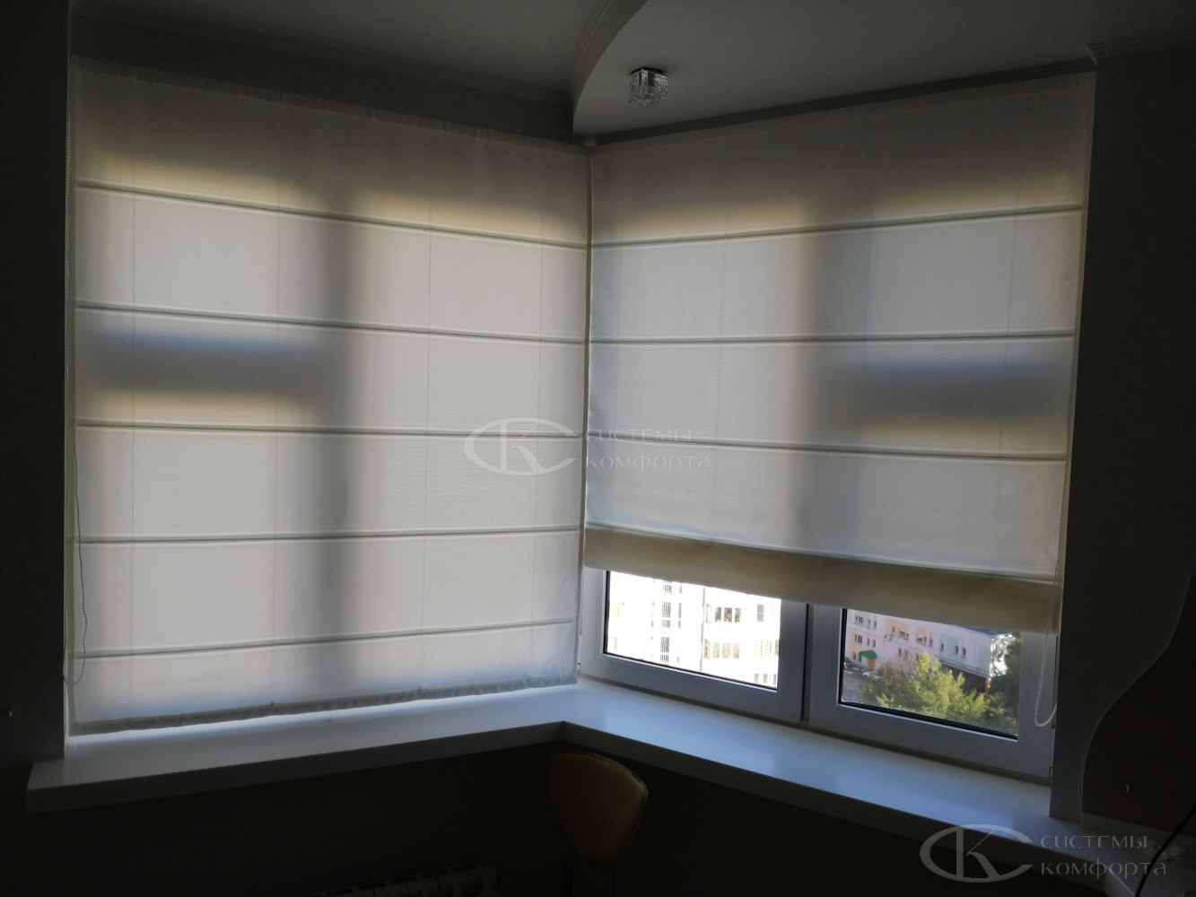 Отдельного упоминания заслуживают римские шторы. Они представляют собой золотую середину между классической текстильной занавесью и современной солнцезащитной системой. При подъеме такое полотно складывается в аккуратные, равномерные горизонтальные складки-волны. Это решение дарит интерьеру ту самую теплоту, уют и «мягкость», которые ассоциируют с традиционными шторами, но при этом сохраняет лаконичность и функциональность жалюзи. Римские шторы из натурального льна, хлопка или смесовых тканей – это беспроигрышный выбор для спальни в стиле Прованс, скандинавской гостиной или элегантного кабинета, они добавляют пространству фактуры и шарма.